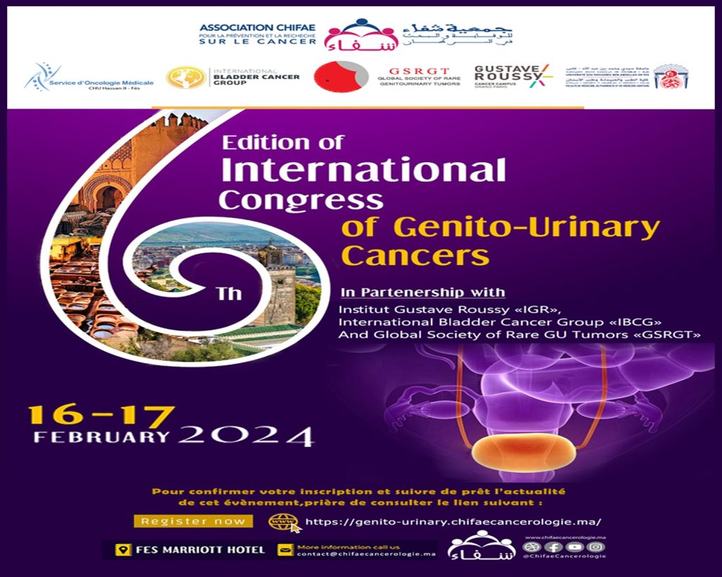 C’est avec un immense plaisir que l’Association Chifae pour la Prévention et la Recherche sur le Cancer en collaboration avec le service d’Oncologie Médicale du CHU Hassan II de FES organise la Sixième Edition du Congrès International d’Oncologie Génito-Urinaire de Fés.